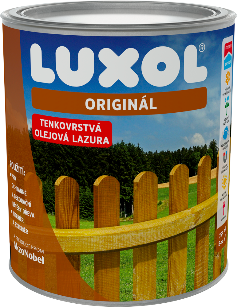 Luxol Originál je tenkovrstvá lazura pro dekorativní nátěry na dřevo s ochranou proti povětrnostním vlivům a UV záření. Nová receptura má vylepšené vlastnosti jako zvýšenou vodoodpudivost, vysokou přilnavost dalšího nátěru, mechanickou odolnost a také hlubokou penetraci. Díky nové krémové konzistenci se lépe roztírá a jednoduše aplikuje. Lazura vyniká stálými barevnými odstíny s matně saténovým vzhledem. Nátěr neomezuje dýchání dřeva a díky sníženému obsahu VOC je také šetrnější k životnímu prostředí. Tenkovrstvá lazura Luxol Originál je vhodná pro nátěry všech stavebních součástí nebo dřevěných konstrukcí jako jsou ploty, dveře, pergoly, zahradní nábytek, obklady domů, okenice, chaty, chalupy a jiné dřevěné konstrukce v exteriéru. Lazura je dobrá pro natírání také v interiéru, protože má minimální zápach a rychleji schne.