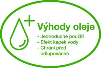 Ochranná olejová lazura odpuzuje vodu a je mimořádně odolná vůči povětrnostním vlivům a UV záření. Porézní povrch s otevřenými póry je preventivně chráněn proti napadení plísní, řasou a houbou.